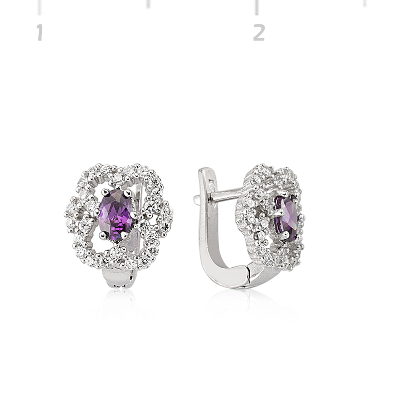 4,9 gram 925 ayar gümüşten üretilmiş gümüş küpe için kullanılan maden rengi beyazdır. Fotoğraftaki gümüş mor taşlı küpe firmamız tarafından garantilidir. Ürünümüz üzerinde zirkon taş vardır.